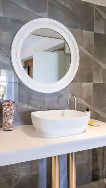 The apartment features two well-appointed bedrooms, each with its own en-suite bathroom. One bedroom offers a king-size bed, while the second bedroom is fitted with two single beds — perfect for a flexible sleeping arrangement.