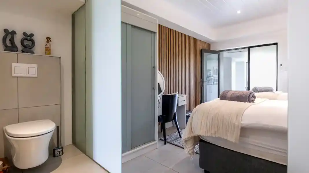 Guests can enjoy two separate living areas, both air-conditioned for year-round comfort. The main lounge includes a TV and an indoor braai — ideal for relaxed evenings. The second entertainment room features a pool table and an additional TV, creating the perfect space for fun and unwinding.